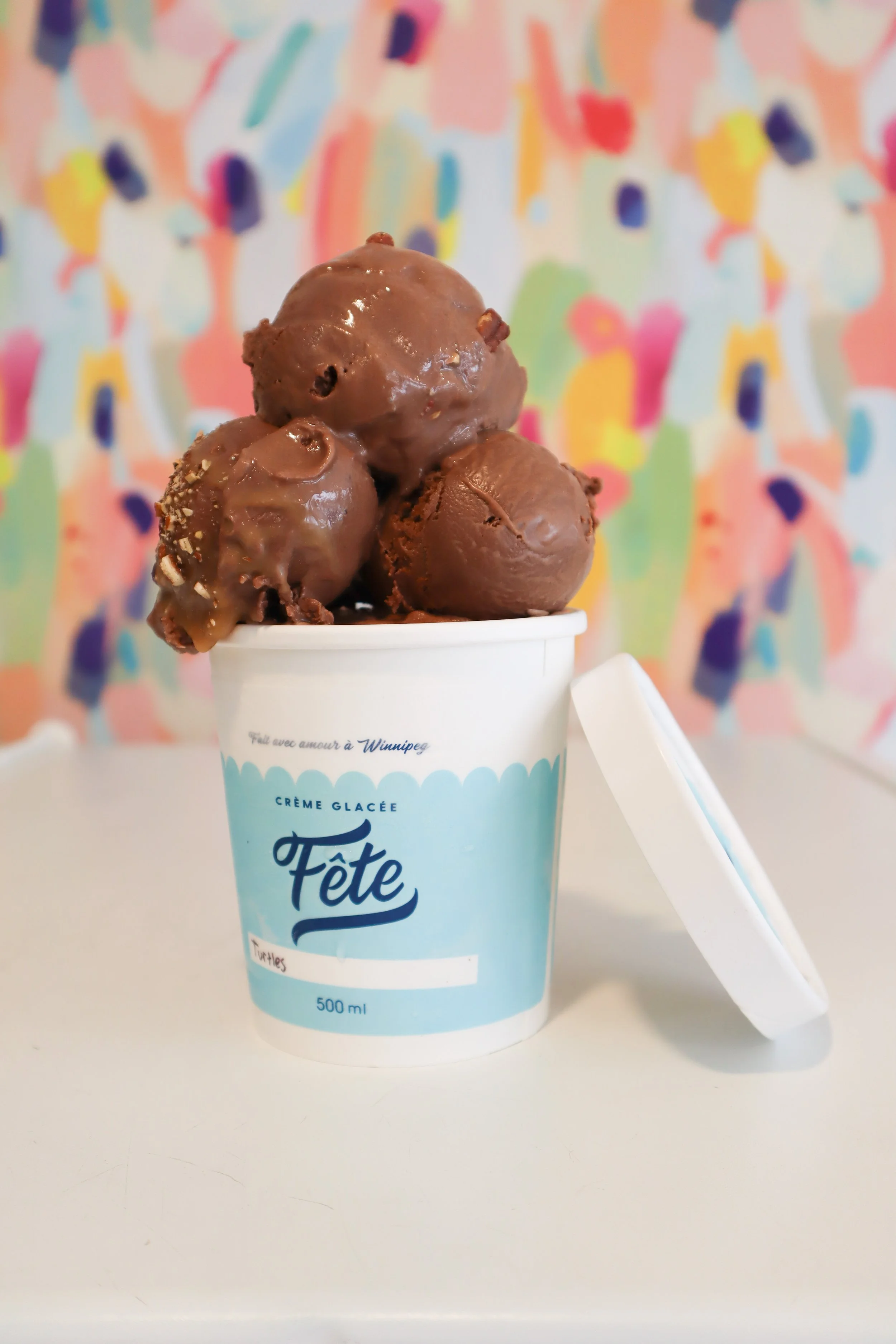 Turtles (*gf) Our decadent chocolate base with swirls of caramel and toasted pecans mixed through out.